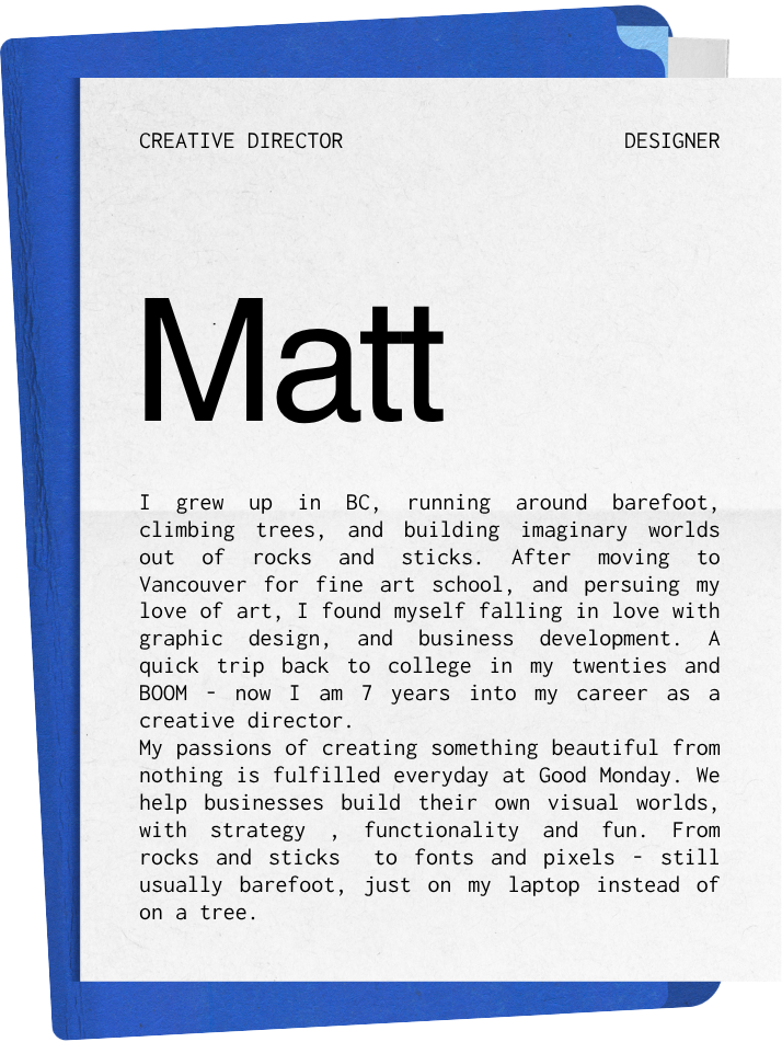No matter what you want to make, we’re here to bring it to life. From minimal, clean, and editorial to kooky, bold, and fun, our specialty is shaping work that feels true to you. Your brand, your voice, your vibe — translated into something clear, intentional, and unmistakably yours.